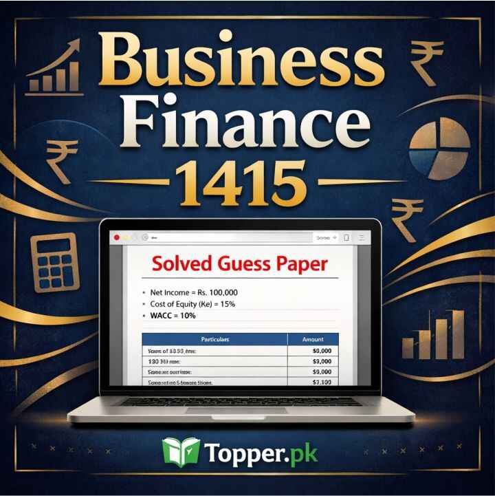 Presenting the Solved Guess Paper for Course 1415 (Introduction to Business Finance) . Whether you’re a BA, BS, B.Com, or AD student, this is the only study tool you’ll need to conquer your 3 Credit Hours finance exam.