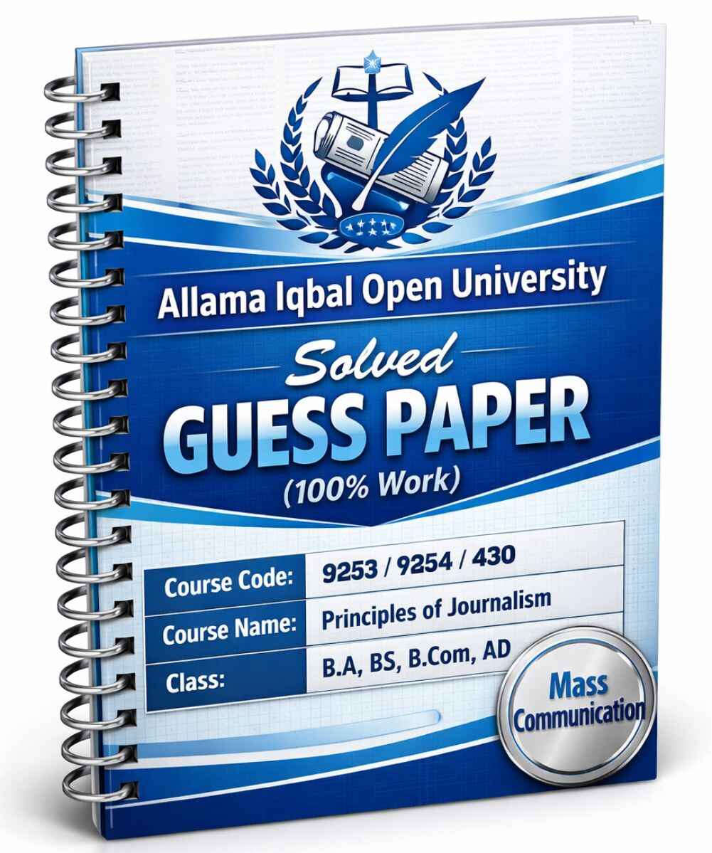 This AIOU 9253/9254/430 Solved Guess Paper covers everything you need – from fundamentals of journalism to advanced editing techniques, from history of Urdu press to modern media trends.